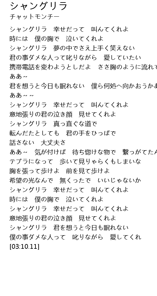 | [02:53.73] | シャングリラ 君を想うと今日も眠れない |