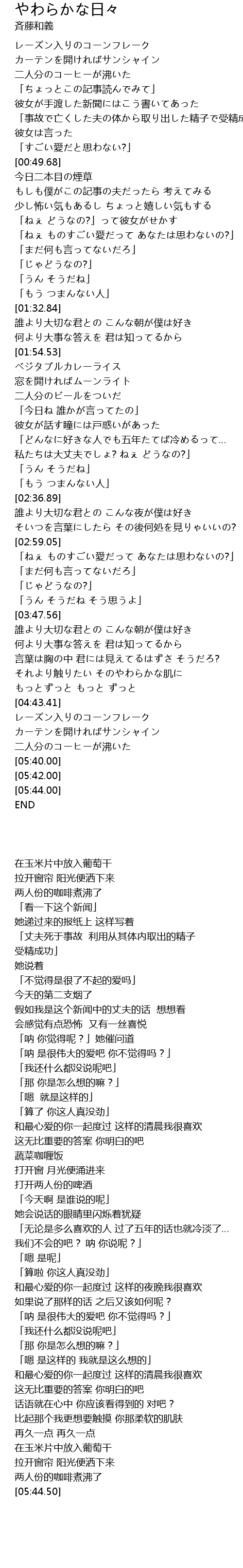 | [00:45.31] | 「すごい愛だと思わない?」 |