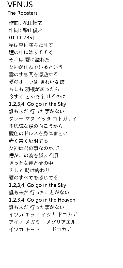 | [02:18.780] | 1,2,3,4, Go go in the Sky |