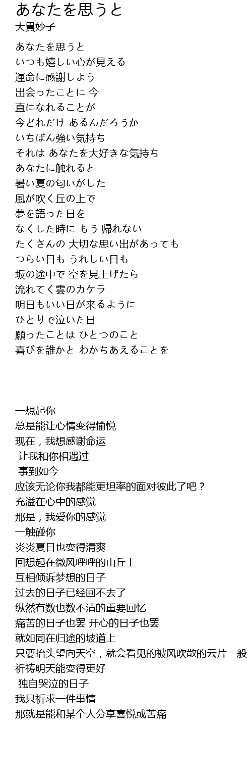 | 歌曲 | あなたを思うと |