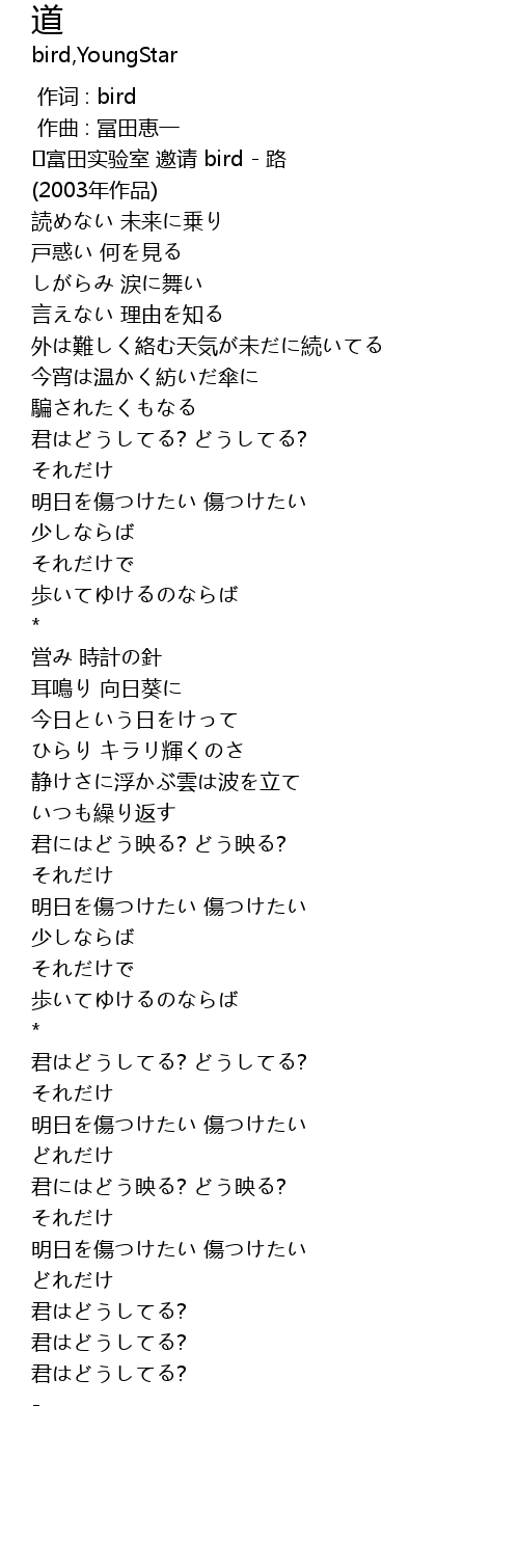 | [00:00.200] | ♪富田实验室 邀请 bird - 路 |