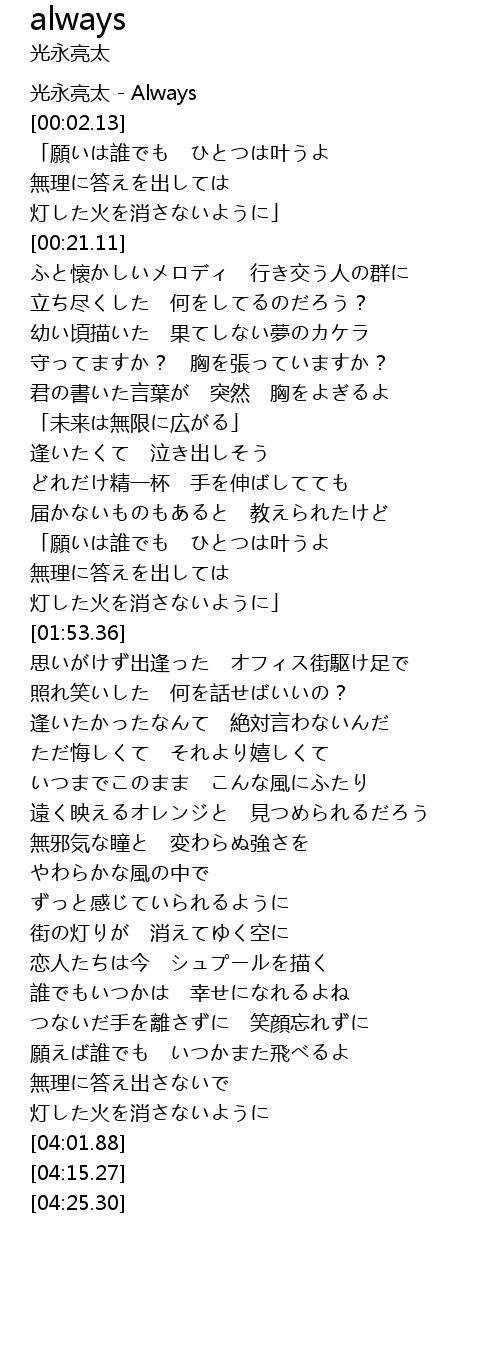 | [00:00.00] | 光永亮太 - Always |