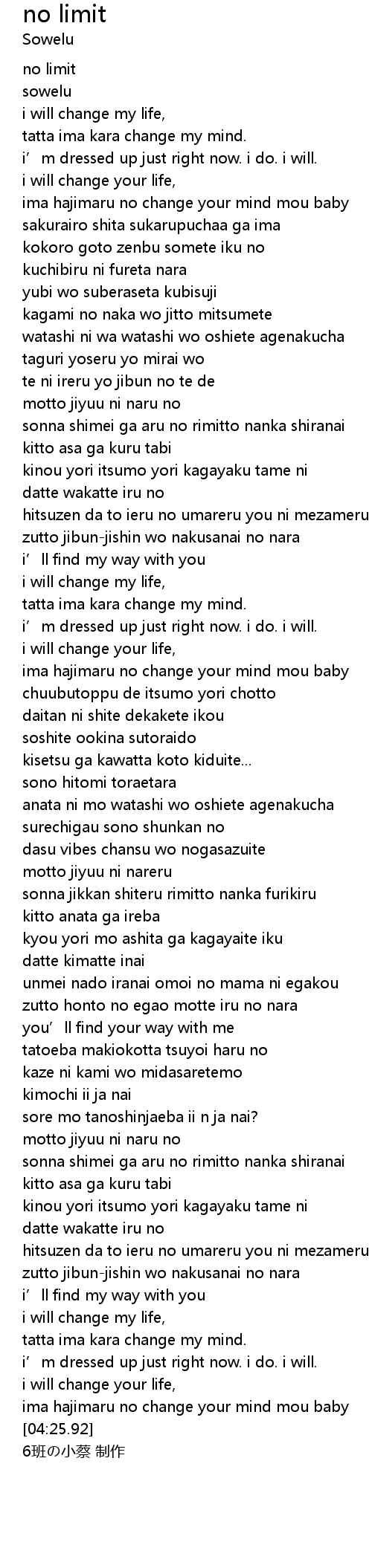 | [04:21.95] | ima hajimaru no change your mind mou baby |