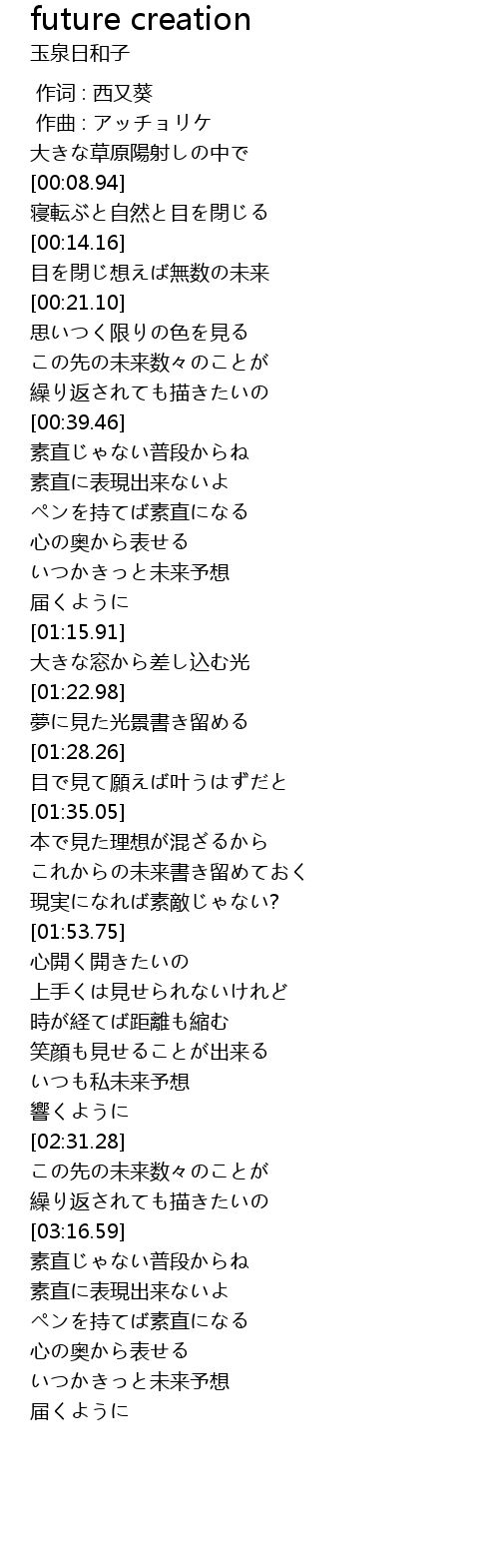 | [02:18.75] | いつも私未来予想 |