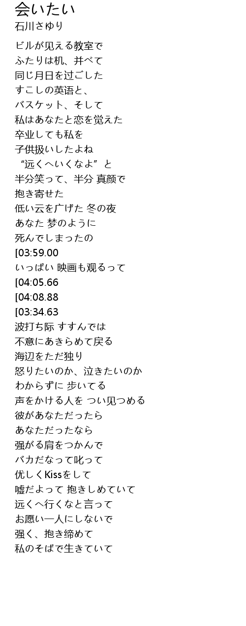 | [01:55.71][03:34.63][04:15.92] | 会いたい… |