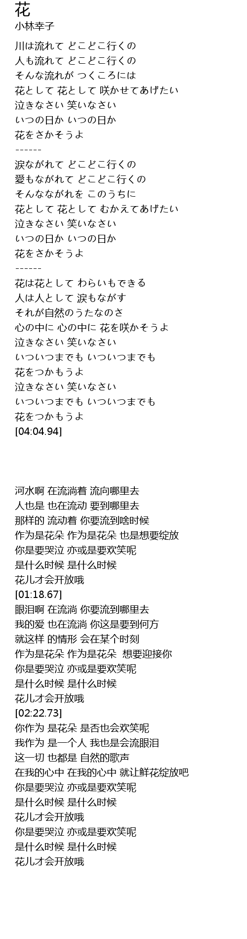 | [02:47.03] | 你作为 是花朵 是否也会欢笑呢 |