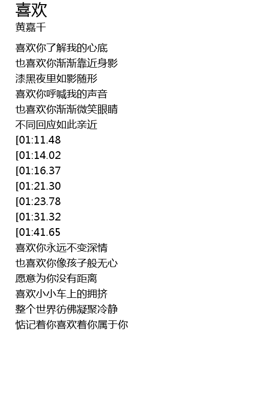 喜欢 歌词