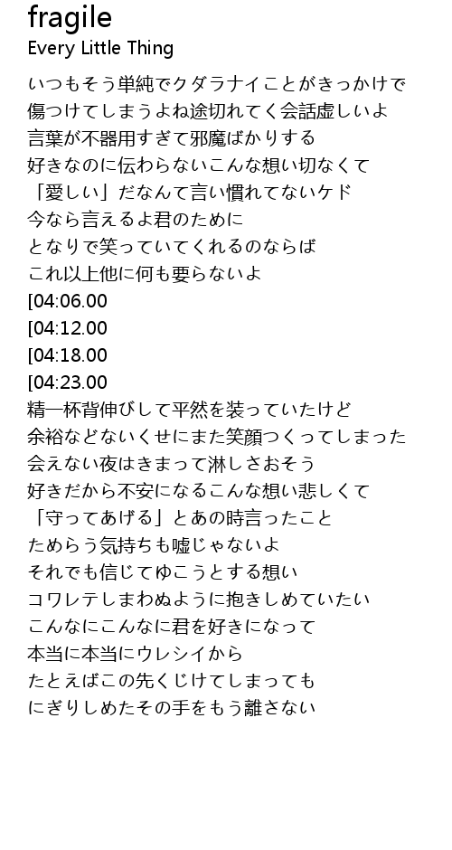 | [03:19.00] | コワレテしまわぬように抱きしめていたい |