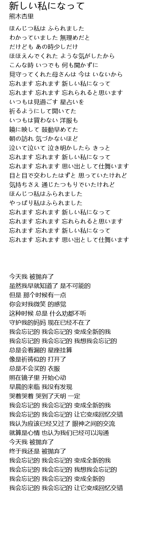 忘れます 忘れます 新しい私になって |
