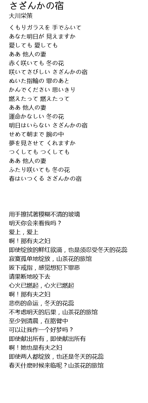 咲いてさびしい さざんかの宿 |