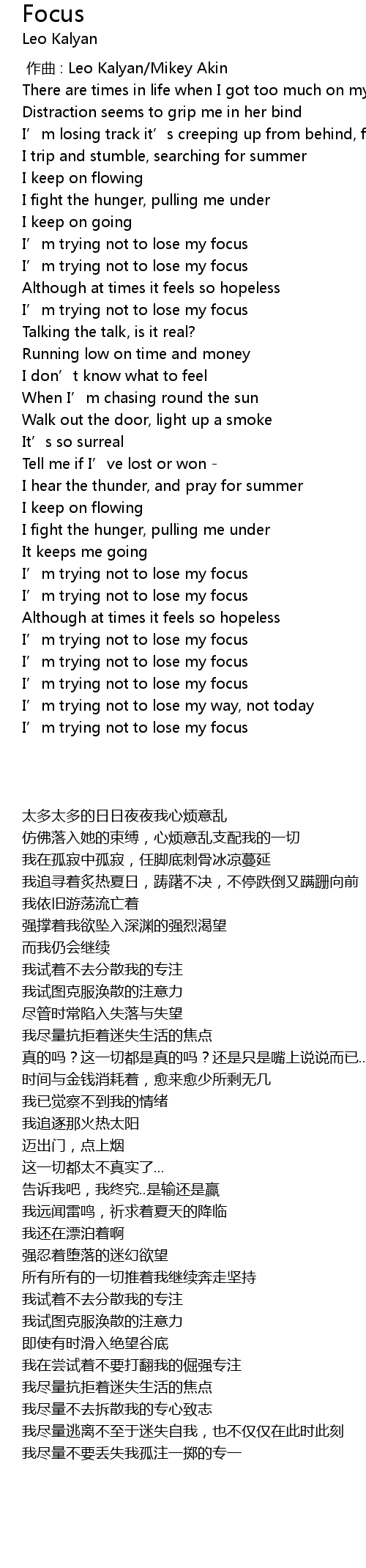 | [01:58.63] | 我尽量抗拒着迷失生活的焦点 |