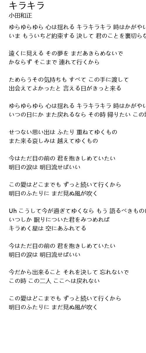 | ゆらゆらゆら 心は揺れる キラキラキラ 時はかがやいてる | |