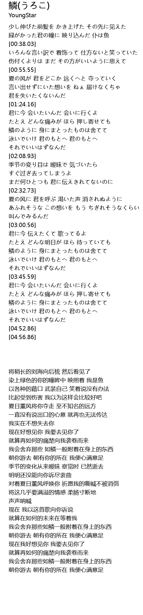 | [04:27.57] | 鳞のように 身にまとったものは舍てて |