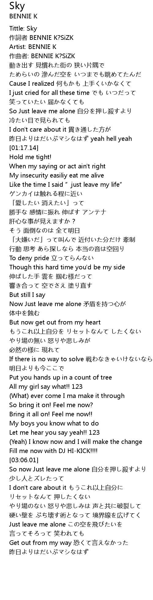 | [01:38.72] | Like the time I said ”just leave my life” |