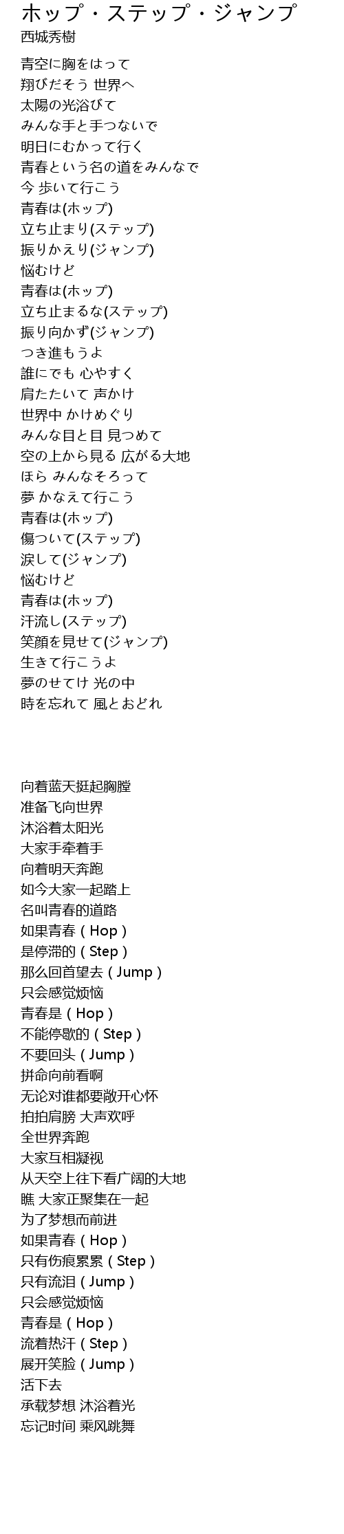 | 歌曲 | ホップ・ステップ・ジャンプ |