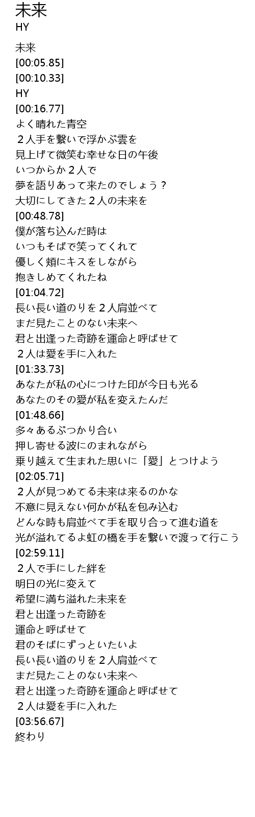 | [02:22.32] | 2人が見つめてる未来は来るのかな |