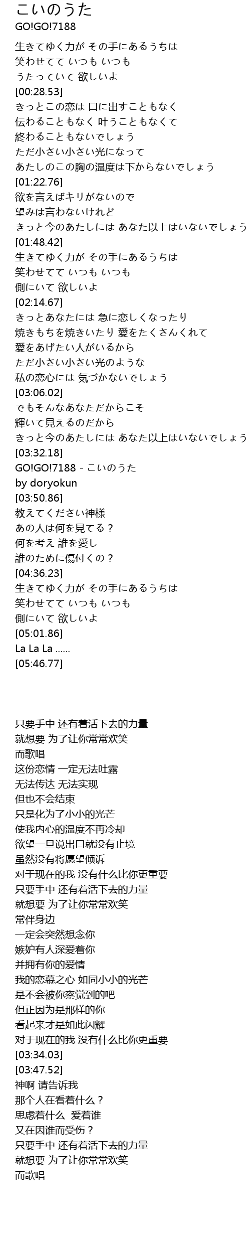 | [03:34.03] | GO!GO!7188 - こいのうた |