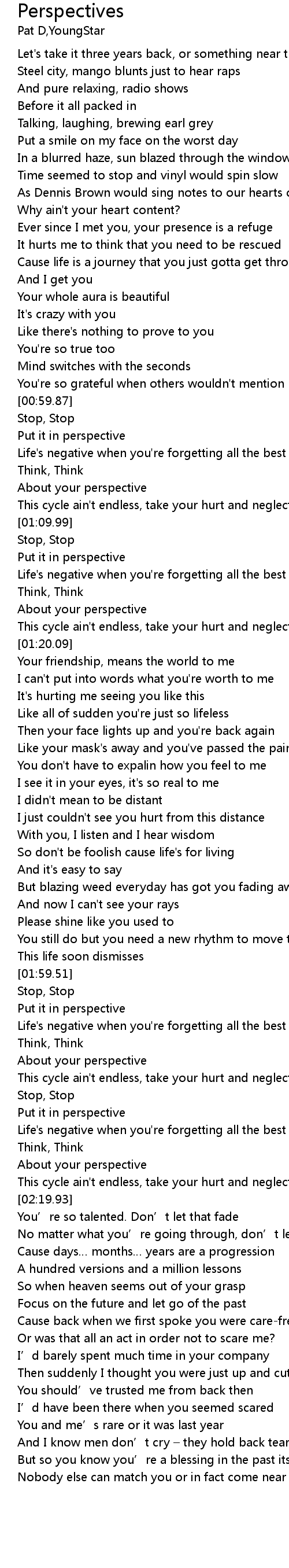 | [02:06.36] | About your perspective |