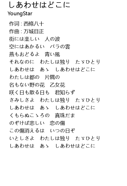 | [01:53.790] | しあわせは あゝ しあわせはどこに |