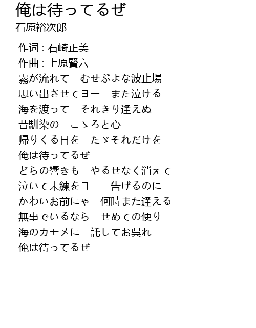 | 歌曲 | 俺は待ってるぜ |