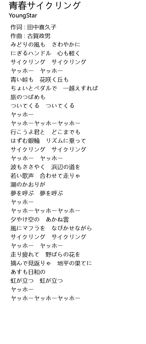 | [01:24.045] | はずむ銀輪 リズムに乗って |