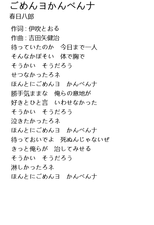 | [00:53.542] | ほんとにごめんヨ かんべんナ |