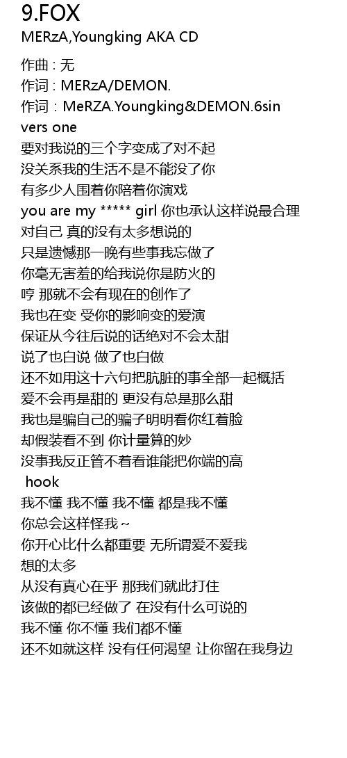 | 作词:MeRZA.Youngking&DEMON.6sin | |