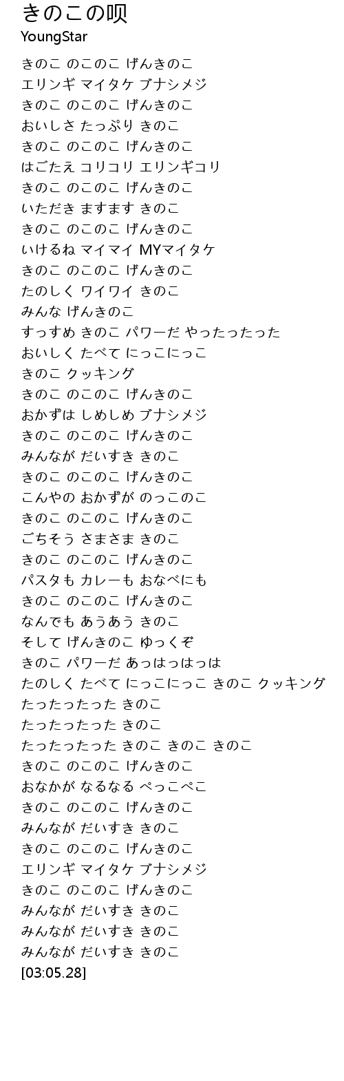 | [00:56.27] | きのこ のこのこ げんきのこ |