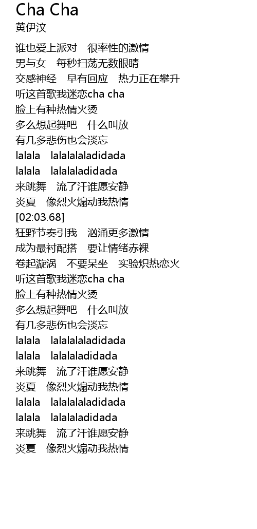 | [02:48.90] | 听这首歌我迷恋cha cha |
