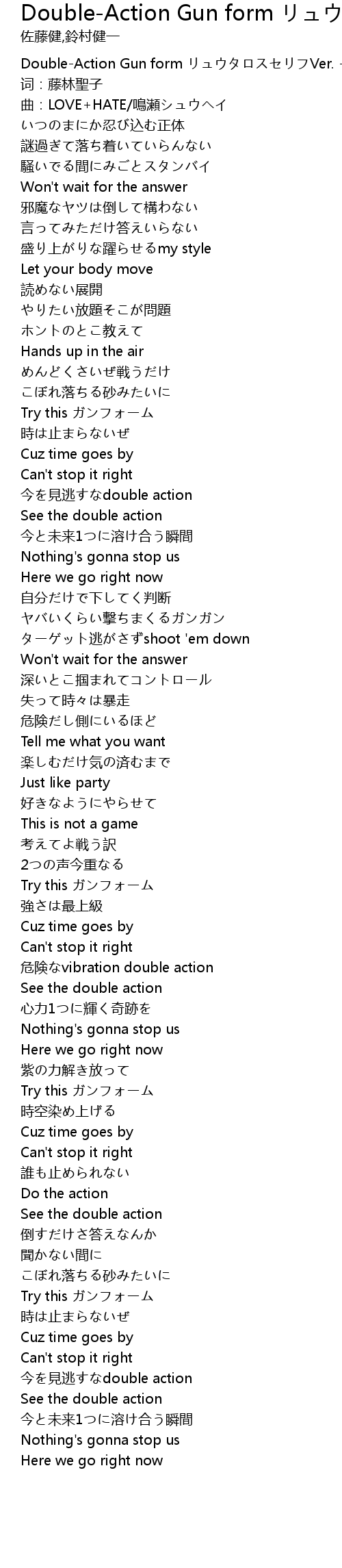 | [00:01.00] | Double-Action Gun form リュウタロスセリフVer. - 群星 |