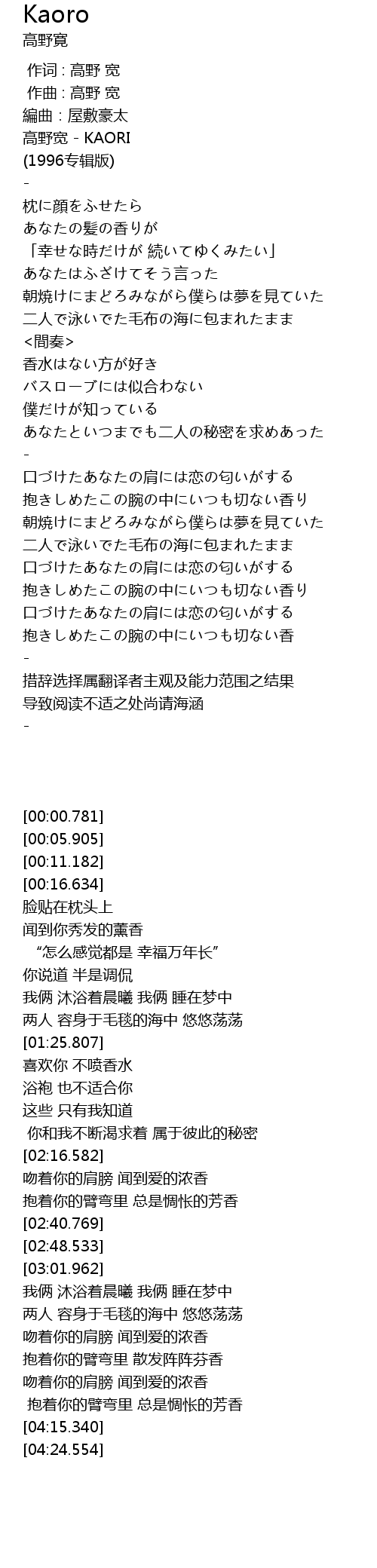 | [03:53.679] | 口づけたあなたの肩には恋の匂いがする |