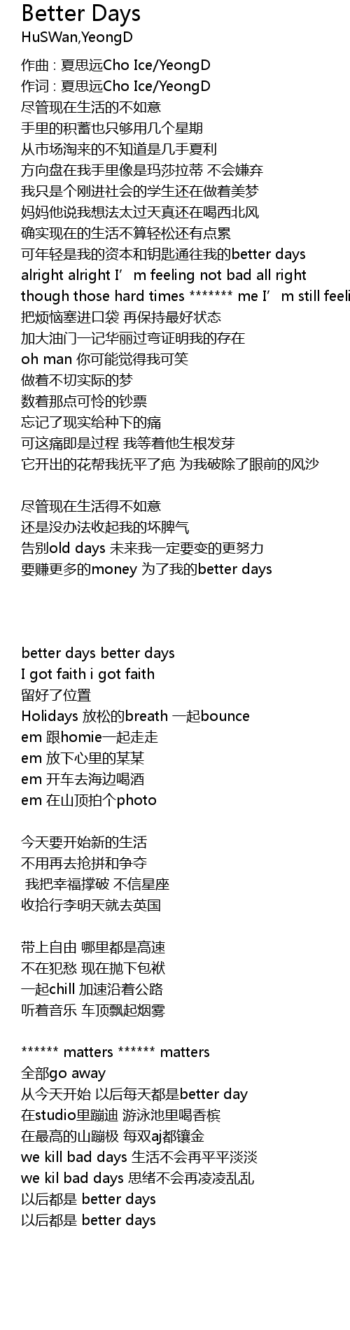 | cóng jīn tiān kāi shǐ yǐ hòu měi tiān dū shì better day | |