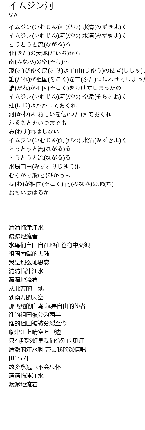 | [01:38] | イムジン(いむじん)河(がわ) 空遠(そらとお)く |