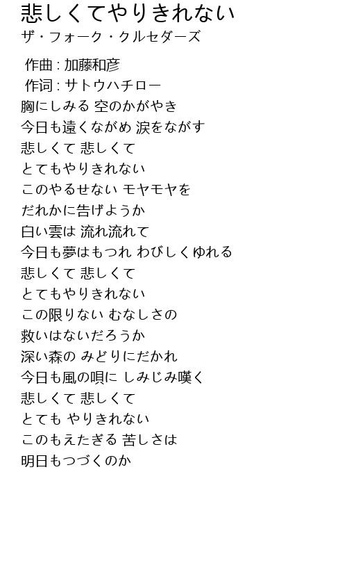 | 歌曲 | 悲しくてやりきれない |