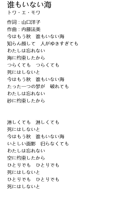 | 歌曲 | 谁もいない海 |