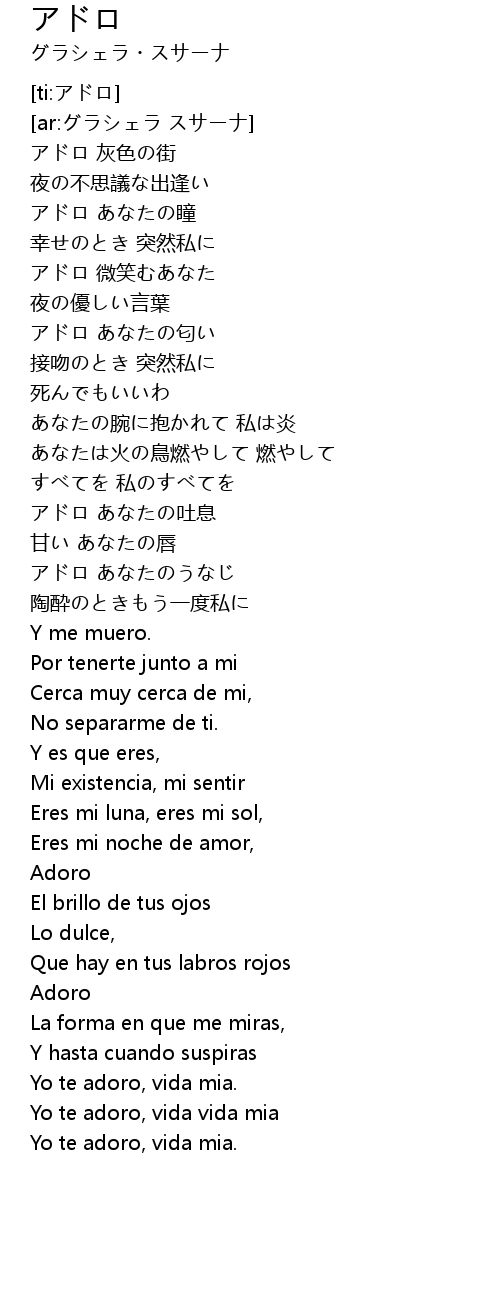 | [02:51.36] | Yo te adoro, vida mia. |