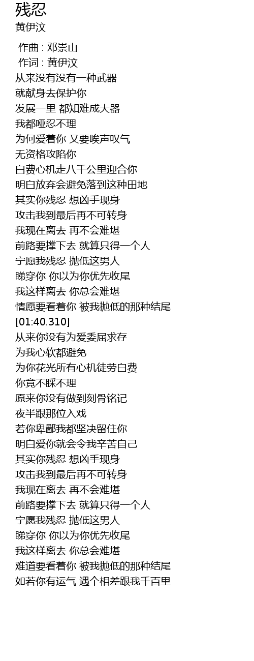 | [02:40.700] | 其实你残忍 想凶手现身 |