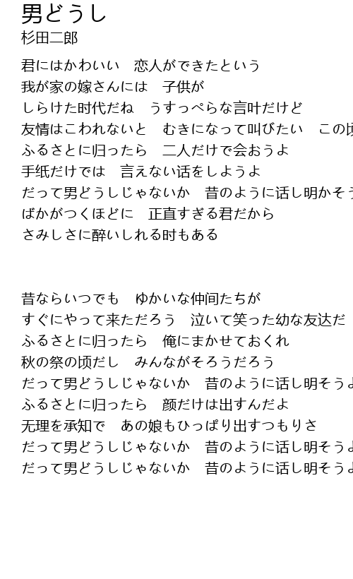 | だって男どうしじゃないか 昔のように话し明そうよ | |