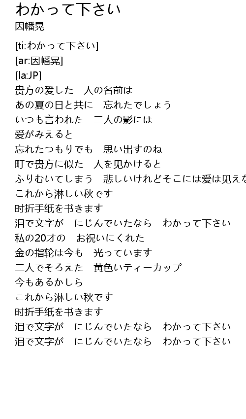 | [ti:わかって下さい] | |
