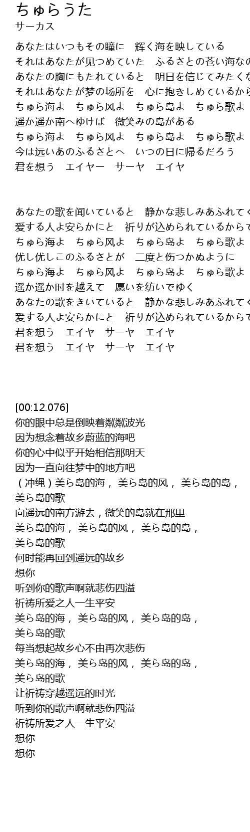 | [02:55.547] | 美ら岛的海, 美ら岛的风, 美ら岛的岛, 美ら岛的歌 |