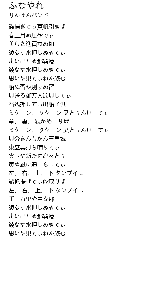 ふなやれ 歌词