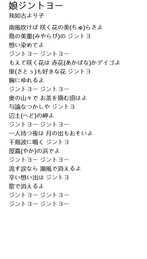 | 歌曲 | 娘ジントヨー |