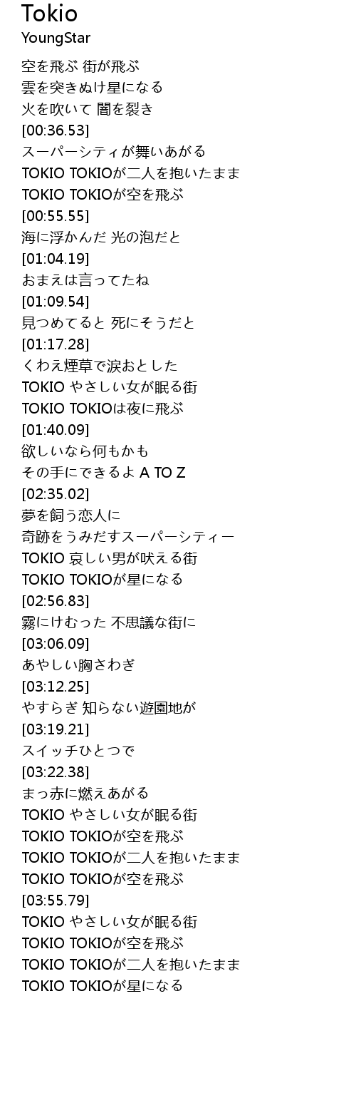 TOKIO TOKIOは夜に飛ぶ |