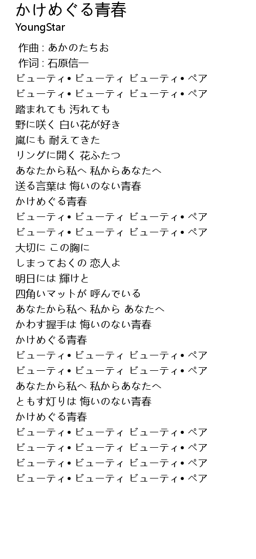 | [03:01.10] | ビューティ• ビューティ ビューティ• ペア |