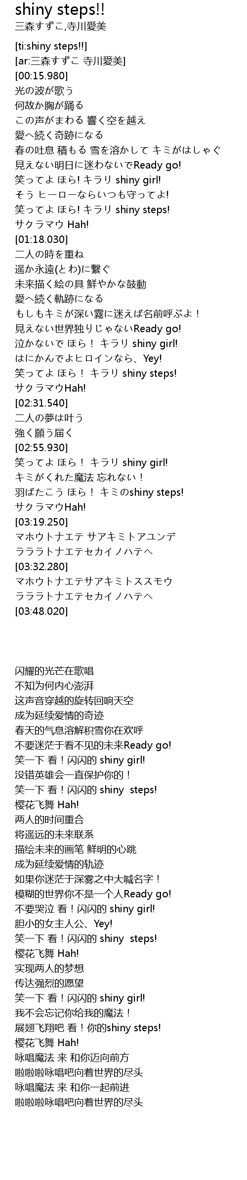 | [03:10.460] | 展翅飞翔吧 看!你的shiny steps! |