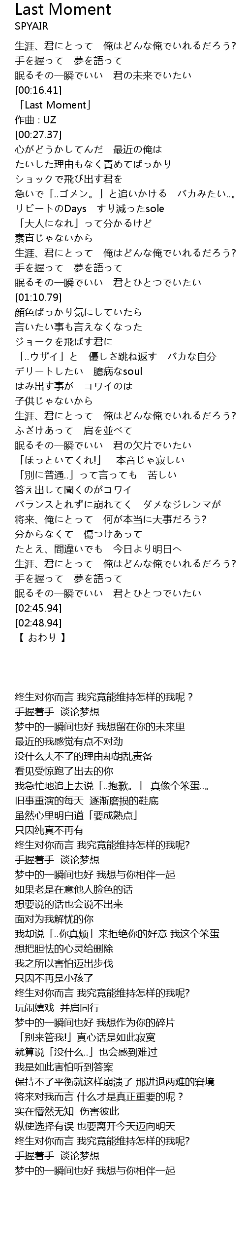 | [02:30.19] | 终生对你而言 我究竟能维持怎样的我呢? |