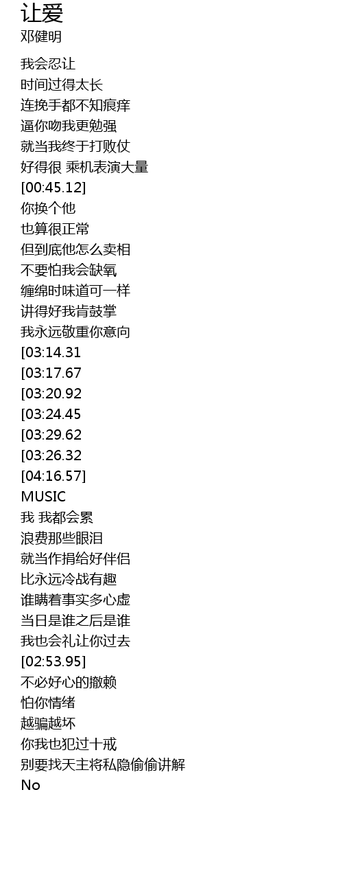 | [03:51.56][03:24.45][02:33.69][01:25.22] | 离开当然了解 |