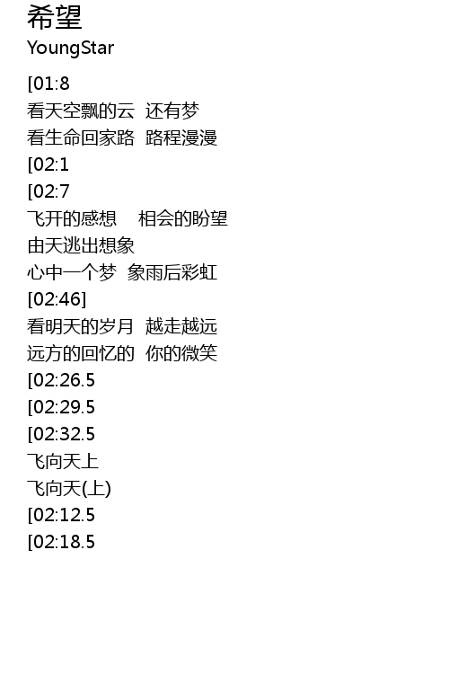 | [02:35.5] | 飞向天(上) |