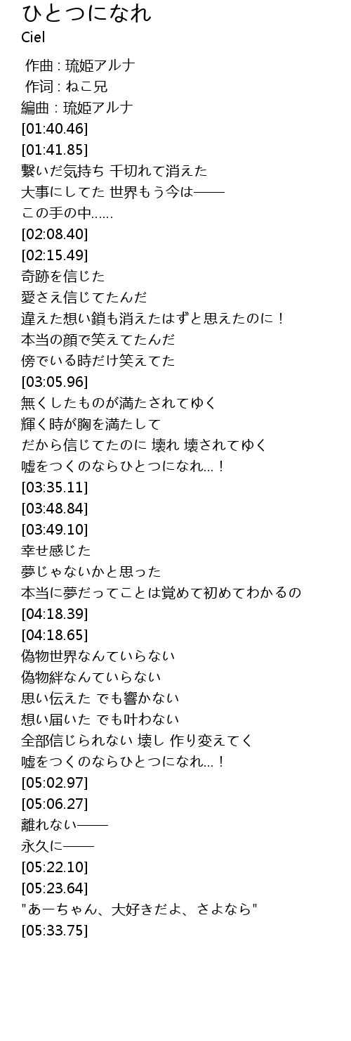 | [03:27.58] | 嘘をつくのならひとつになれ...! |