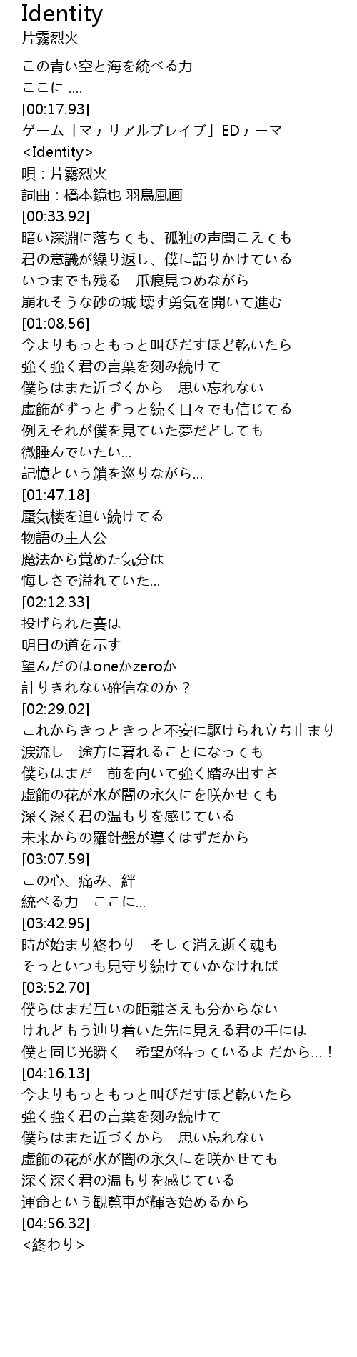| [00:18.19] | ゲーム「マテリアルブレイブ」EDテーマ |